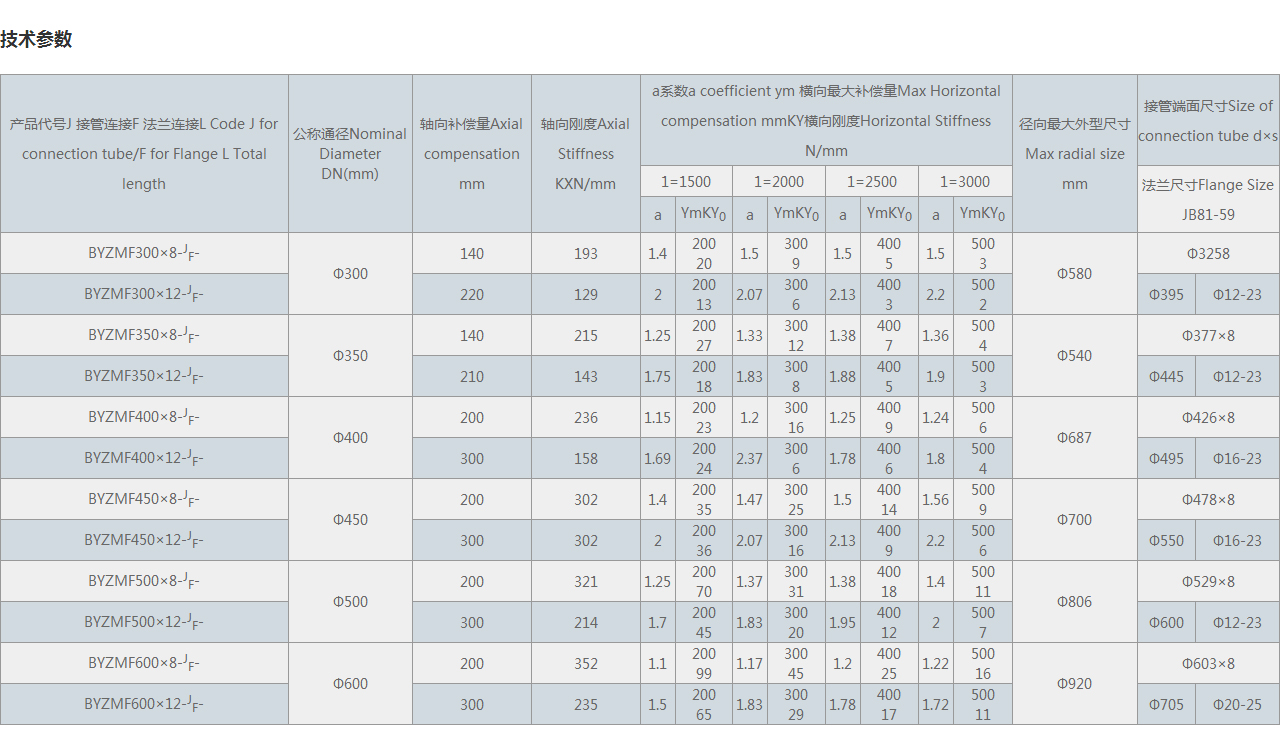 2、產品代號中的1要按所需長度填寫,如WZMF500×8-J-2200,則產品的交付長度為2200毫米。