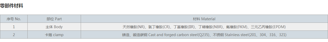 | 2 | 卡箍 clamp | 鑄造、鍛造碳鋼 Cast and forged carbon steel(Q235)、不銹鋼 Stainless steel(201、304、316、321) |