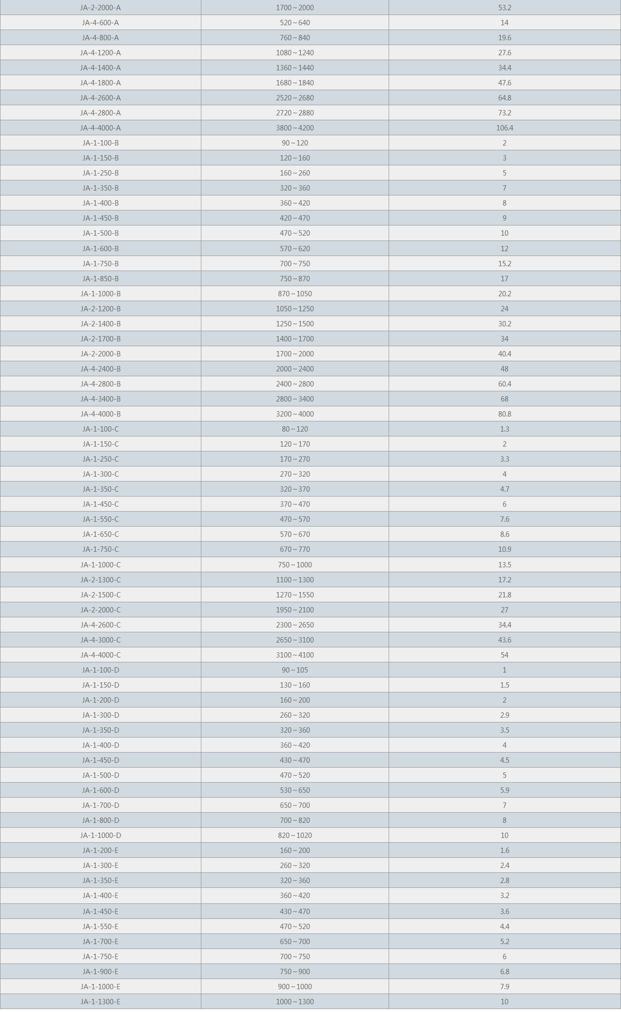 | JA-4-4000 | 3200~4000 | 160 |