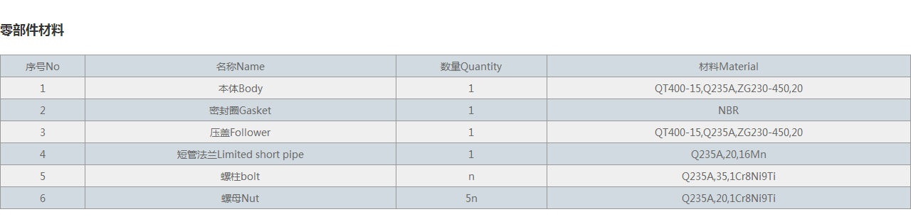 | 6 | 螺母Nut | 5n | Q235A,20,1Cr8Ni9Ti |