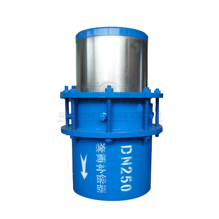 套筒式伸縮器,它由外筒和內筒組成,外筒和內筒的法蘭片上裝有限位桿,在外筒的內壁上設有限位塊,外筒和內筒之間由V型橡膠圈來密封。套筒伸縮器在一定范圍內可軸向伸縮,能極大的方便閥門管道的安裝與拆卸,在管道允許伸縮量中可以自由伸縮,一旦越過其很大伸縮量就起到限位,確保管道的安全運行。主要為保障管道安全運行,具有以下作用:補償吸收管道軸向熱變形;吸收設備振動,減少設備振動對管道的影響;吸收地震、地陷對管道的變形量。